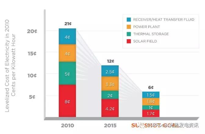 美國SUNSHOT計劃預期達到的CSP成本目標(來源:美國能源部Sunshot計劃)