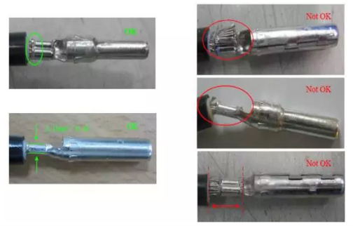 涉及到壓接工藝時我們還需要注意剝線環(huán)節(jié),標(biāo)準(zhǔn)中對于在剝線中切斷的銅絲數(shù)是有嚴(yán)格規(guī)定的。如果切斷的銅絲較多就會影響壓接及通流質(zhì)量,從而造成較高的溫升。
