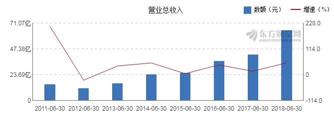 近8年來,該公司同期營(yíng)業(yè)收入及增速情況如下圖: