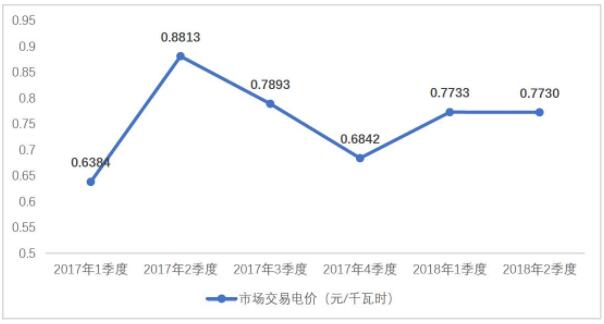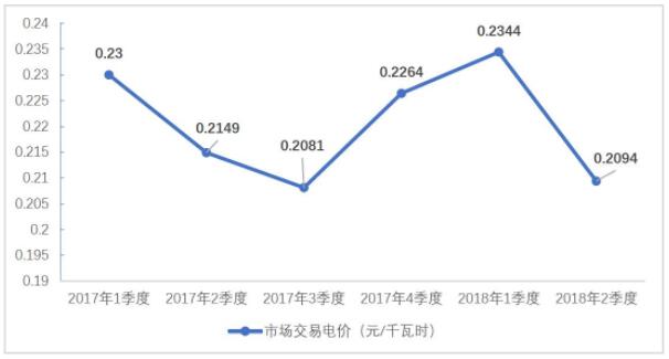 圖10 2017年-2018年2季度光伏市場(chǎng)交易電價(jià)走勢(shì)圖