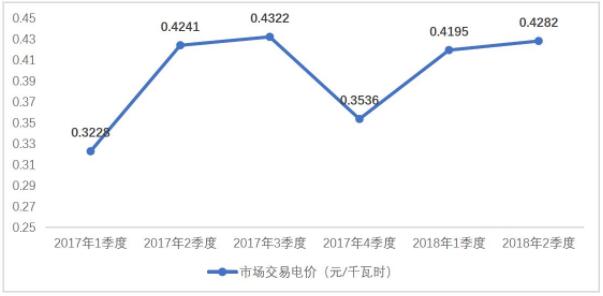 圖5 2017年-2018年2季度煤電市場(chǎng)交易電價(jià)走勢(shì)圖