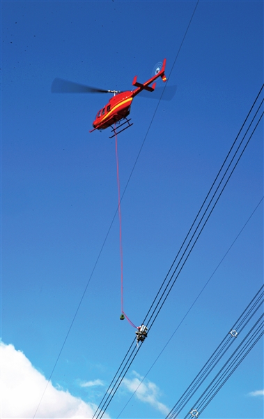 2014年,云南電網(wǎng)公司開展直升機帶電作業(yè)。朱斌 攝