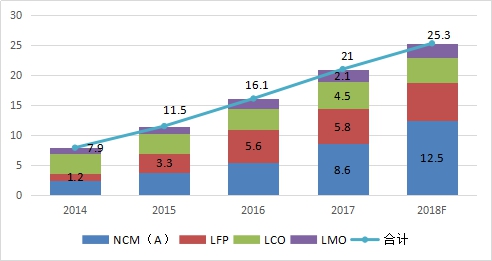 SIPR預(yù)計(jì)2018年中國(guó)鋰電正極材料產(chǎn)量將突破25萬(wàn)噸,其中三元材料仍將是市場(chǎng)最大需求產(chǎn)品,主要原因有: