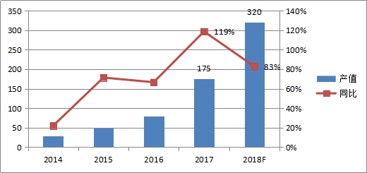 單從三元材料產(chǎn)值方面來(lái)看,SPIR數(shù)據(jù)統(tǒng)計(jì)2017年中國(guó)三元材料產(chǎn)值達(dá)175億元,同比增長(zhǎng)高達(dá)119%,預(yù)計(jì)2018年在新能源動(dòng)力電池、數(shù)碼三元替代鈷加速等情況對(duì)三元材料需求量的拉動(dòng),加上其價(jià)格上漲情況看,全年中國(guó)三元材料總產(chǎn)值有望突破300億元。