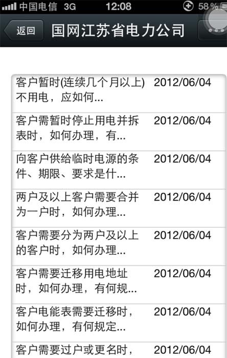 點(diǎn)擊“服務(wù)資訊”,是有關(guān)常規(guī)用電服務(wù)如何辦理的信息,您可以直接通過手機(jī)微信平臺(tái)查詢相關(guān)業(yè)務(wù)規(guī)定。