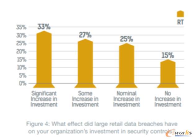 與醫(yī)療和金融服務(wù)等其他行業(yè)相比,接受調(diào)查的零售商并沒有通過在安全控制方面進(jìn)行投資的方式對全行業(yè)的安全違規(guī)行為做出回應(yīng),其中只有33%的企業(yè)大幅增加了投資。這情況很令人擔(dān)憂,原因是60%以上的受訪者正采集客戶數(shù)據(jù)進(jìn)行分析和個性化營銷;缺少相關(guān)投資可能會讓零售商更容易遭受到威脅和攻擊。