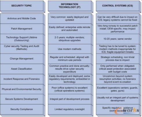 (3)技術支持周期:IT系統(tǒng)由于供應商較多,升級方便,技術更新周期都很快,基本在2到3年;工控系統(tǒng)都是專用的供應商,可能就一家或幾家,技術更新周期都在10到20年左右。