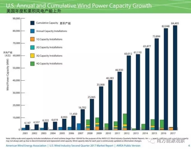 這一容量來自于安裝在美國50個州,哥倫比亞特區(qū),關(guān)島,波多黎各和美屬維爾京群島的大約77,000渦輪機(jī)。
