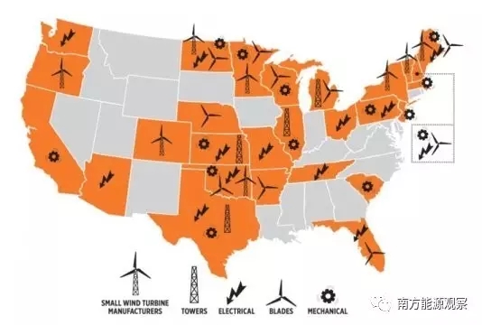 美國有27個州是生產(chǎn)各種小型風(fēng)力渦輪機(jī)組件的所在地