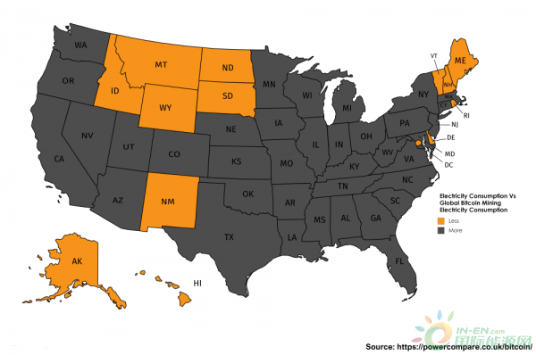 比特幣挖礦已經(jīng)比美國12個州(阿拉斯加、夏威夷、愛達(dá)荷州、緬因州、蒙大拿州、新罕布什爾州、新墨西哥州、北達(dá)科他、羅德島、南達(dá)科他、佛蒙特州和懷俄明州)消耗的電力都多;