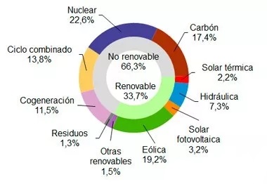 西班牙光熱發(fā)電占比2.2% 新能源合計(jì)33.7%