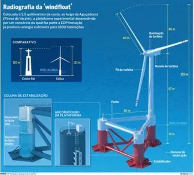 2011年10月,Principle Power公司部署了一臺(tái)全范圍的2兆瓦WindFloat原型機(jī)在葡萄牙海岸。這臺(tái)發(fā)電機(jī)可在岸基進(jìn)行組裝和調(diào)試,然后再沿著葡萄牙海岸拖曳。截止目前該系統(tǒng)已經(jīng)發(fā)電超過(guò)了16GWh,通過(guò)海底線纜傳送至當(dāng)?shù)氐碾娋W(wǎng)。