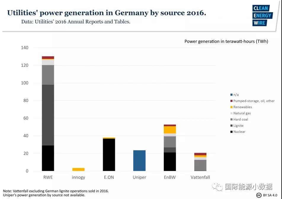在德國(guó),有Big Four之稱的四大電力行業(yè)公司是:RWE,E-ON,Vattenfall,EnBW。根據(jù)德國(guó)涉及壟斷委員會(huì)的數(shù)據(jù),在2014年,這四家公司在德國(guó)
