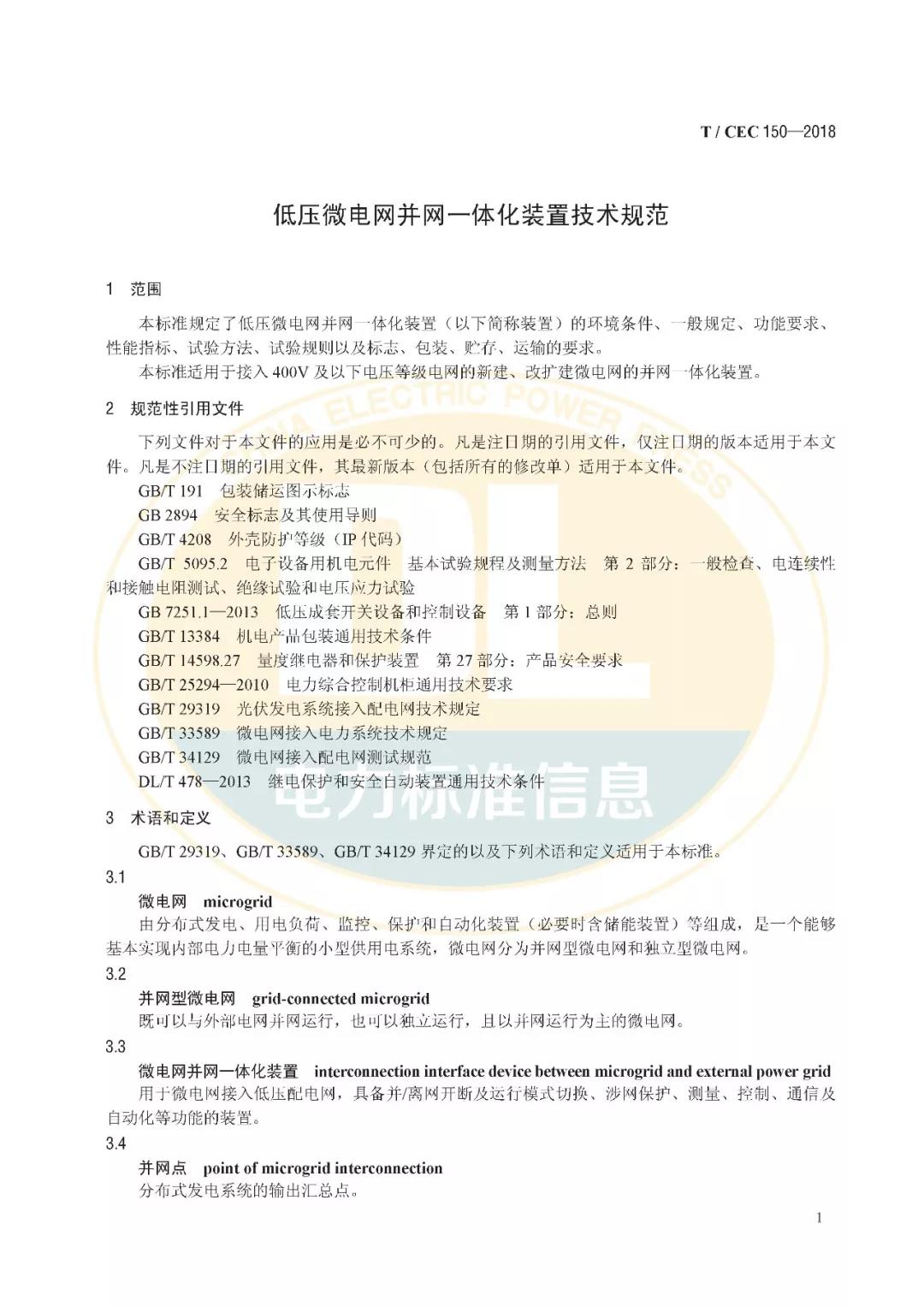 《低壓微電網并網一體化裝置技術規(guī)范》T/CEC 150—2018在線閱讀