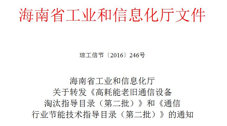 海南:《通信行業(yè)節(jié)能技術(shù)指導(dǎo)目錄》及《高耗能老舊電信設(shè)備淘汰指導(dǎo)目錄》