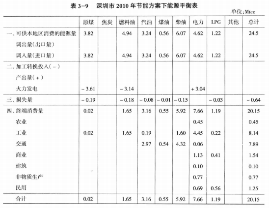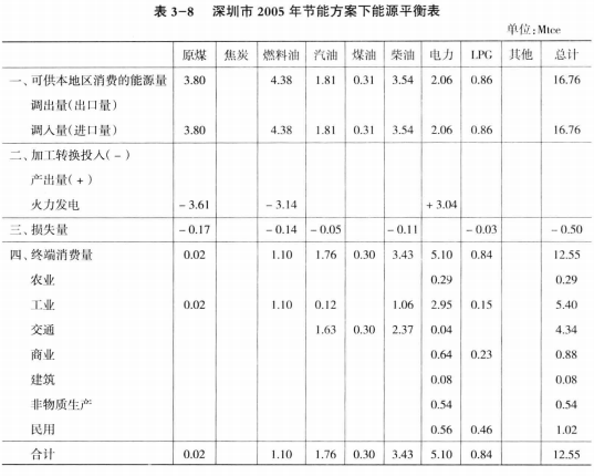 3.4.1 深圳市2005-2020年節(jié)能方案下能源平衡表描述