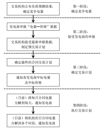 交易機構(gòu)制定合同電量市場交易計劃,并通知各發(fā)電商(機組)在合同電量市場中每個月的中標(biāo)電量和中標(biāo)價格(或各個時段的出力),隨后簽訂正式合同。