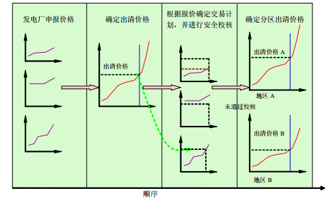 3、報價排序:在各時段,根據(jù)賣方的報價,由高到低地進行排序;根據(jù)買方的報價,由低到高地進行排序。