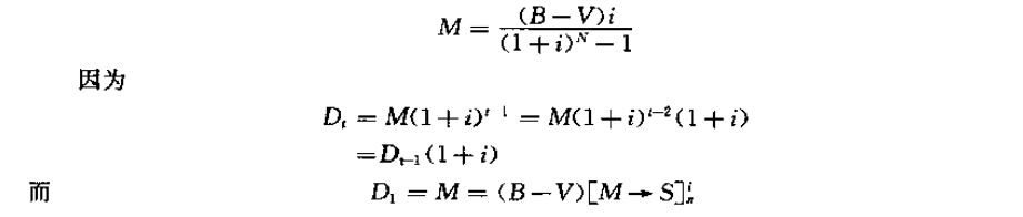 上式實(shí)際上是由年金M求本利和B-V的公式。反過來,我們可以由本利和B-V求得每年所提取的折舊費(fèi),即