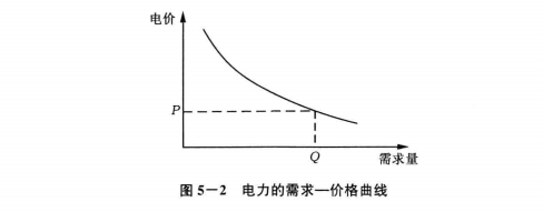 根據(jù)經(jīng)濟(jì)學(xué)原理,與一般商品市場(chǎng)相似,當(dāng)將需求響應(yīng)原理引入到電力市場(chǎng)中時(shí),電力需求也會(huì)隨著價(jià)格的變化而變化。我們可以通過(guò)需求——價(jià)格曲線(xiàn)分析需求響應(yīng)原理,如圖5.2所示。