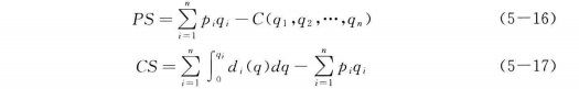 拉姆齊定價(jià)理論是由Ramsey在1927年發(fā)表的一篇著名文章中提出,不同于按邊際成本定價(jià)的最優(yōu)定價(jià)方式,它是一種次最優(yōu)定價(jià),在考慮對(duì)資源配置的消極影響最小的同時(shí),至少允許企業(yè)能夠回收固定成本。拉姆齊定價(jià)的基本思想是在保證預(yù)算平衡的前提下實(shí)現(xiàn)經(jīng)濟(jì)福利的最大化。假設(shè)電力公司為n類(lèi)用戶(hù)提供服務(wù),由經(jīng)濟(jì)學(xué)原理可知,用以表征社會(huì)福利的生產(chǎn)者剩余與消費(fèi)者剩余可以分別表示為: