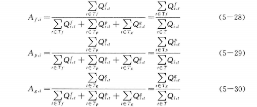 (3)供電邊際成本表達(dá)式。以上分析確定了在發(fā)電側(cè)實(shí)行峰谷上網(wǎng)電價(jià)的情況下每臺(tái)機(jī)組的上網(wǎng)電價(jià)計(jì)算模型。供電公司在確定供電邊際成本時(shí),應(yīng)根據(jù)從發(fā)電廠(chǎng)(或各機(jī)組)購(gòu)買(mǎi)的電量以及各電廠(chǎng)(或各機(jī)組)的上網(wǎng)電價(jià)來(lái)確定。假設(shè)供電公司從m臺(tái)機(jī)組購(gòu)買(mǎi)電量,從機(jī)組i購(gòu)買(mǎi)的電量為q.,并向用戶(hù)提供電力服務(wù)。則供電公司在峰段、平段以及谷段的供電邊際成本分別為: