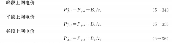 由此得到,按會(huì)計(jì)成本法測(cè)算出的發(fā)電側(cè)峰谷分時(shí)上網(wǎng)電價(jià)表達(dá)式為: