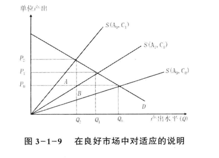 由圖3 -1-10可以看出,遞增適應(yīng)成本是供應(yīng)曲線S(A1C1)以下區(qū)域減去供應(yīng)曲線S( A1C1)以下區(qū)域。還有與該成本測(cè)量相關(guān)的兩個(gè)更重要的問題需要討論。