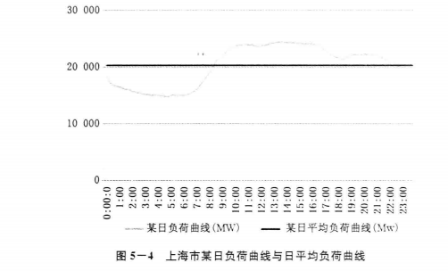 假設(shè)經(jīng)過電力系統(tǒng)短期負(fù)荷預(yù)測,推算出2010年上海市某典型日24小時(shí)負(fù)荷曲線進(jìn)行計(jì)算。以圖5-4為上海市某日負(fù)荷曲線與日平均負(fù)荷曲線,得出電價(jià)波動比。