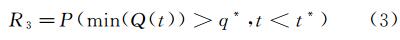 此指標(biāo)將魯棒性和迅速性分開衡量。通過設(shè)定系統(tǒng)功能在災(zāi)害中最低程度q*和最長恢復(fù)時(shí)間t*的容許值,將系統(tǒng)韌性指標(biāo)定義為系統(tǒng)滿足設(shè)定值要求的概率[35],即