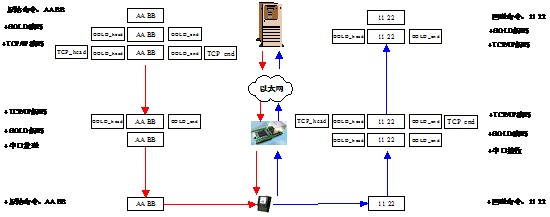 協(xié)議透明轉(zhuǎn)發(fā)技術(shù)是指數(shù)據(jù)傳輸過(guò)程中,原數(shù)據(jù)包不被解釋和改變而進(jìn)行的轉(zhuǎn)發(fā),轉(zhuǎn)發(fā)設(shè)備僅僅實(shí)現(xiàn)數(shù)據(jù)的傳輸功能。本系統(tǒng)中,設(shè)備的實(shí)時(shí)數(shù)據(jù)在現(xiàn)場(chǎng)不進(jìn)行協(xié)議和規(guī)約解釋?zhuān)墙?jīng)過(guò)兩次封裝,最終包裝成TCP/IP包,通過(guò)供電廣域網(wǎng)發(fā)送到局端數(shù)據(jù)中心。