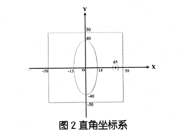 在已知幾何信息的正方形托盤上建立原點(diǎn)在橢圓形心的直角坐標(biāo)系,如圖2所示: