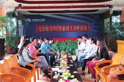 文山電力團(tuán)委節(jié)前關(guān)愛新員工?!×螡?攝冗員與結(jié)構(gòu)性缺員并存,成為困擾企業(yè)發(fā)展的老大難問題。近年來,云南文山電力股份有限公司(以下簡稱文山電力)不斷破冰,通過整合資源,釋放生產(chǎn)人員到一線班組、機(jī)關(guān)人員