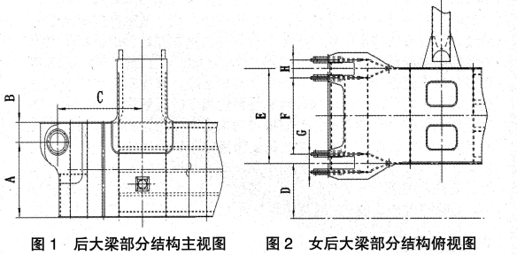 (2)主鉸孔中心一大梁下平面尺寸A(附圖1)。因為尺寸A是為了保證司機室軌道安裝后在主接頭處對接平滑,所以前后大梁主鉸、孔中心到大梁下平面尺寸必須一致或符合圖紙要求。