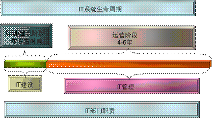 一般而言,IT部門的職責(zé)可以分為IT系統(tǒng)建設(shè)和IT系統(tǒng)維護(hù)兩大部分。據(jù)統(tǒng)計(jì),IT系統(tǒng)運(yùn)行維護(hù)階段的時(shí)間是IT系統(tǒng)建設(shè)期的五到六倍,同時(shí)在運(yùn)維階段,企業(yè)的業(yè)務(wù)應(yīng)用依賴于IT系統(tǒng)的穩(wěn)定運(yùn)行,因此IT部門的主要任務(wù)應(yīng)該是運(yùn)行維護(hù)??墒怯捎谥袊?guó)經(jīng)濟(jì)的迅速發(fā)展,各行業(yè)的IT部門把大部分精力放在IT系統(tǒng)建設(shè)上了,普遍存在“重建設(shè),輕維護(hù)”的情況。