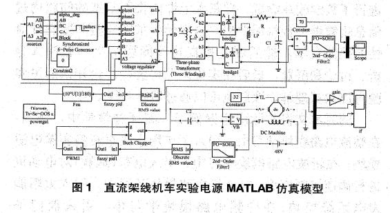 電力電子技術應用案例教學中采用MATLAB] Simu-link仿真軟件,不僅使教學內容更加容易理解,而且也提高了教學效率。圖1是直流架線機車實驗電源MATI.AB仿真模型。
