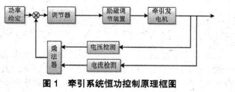 在牽引工況下,主微機(jī)根據(jù)柴油機(jī)的轉(zhuǎn)速和發(fā)電機(jī)的輸出功率,調(diào)節(jié)主發(fā)電機(jī)的勵磁電流,實現(xiàn)柴油機(jī)不同轉(zhuǎn)速下的恒功控制。