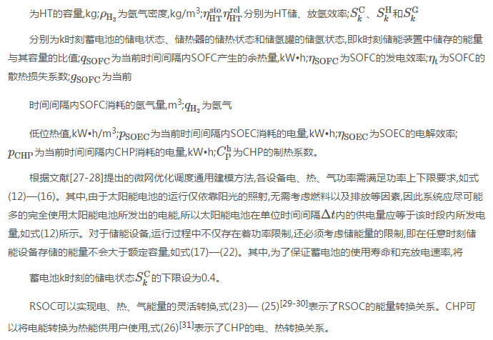 3)將PV作為首要供電設(shè)備,RSOC作為輔助供電設(shè)備,共同向用戶電負(fù)載和系統(tǒng)內(nèi)設(shè)備供電,多余電量儲(chǔ)存在蓄電池中。當(dāng)系統(tǒng)產(chǎn)生的電量不足時(shí),優(yōu)先使用蓄電池中的電量,若還不滿足需求,則接入大電網(wǎng)來提供電量。