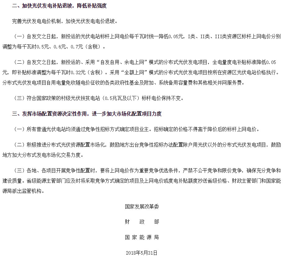6月1日,國家能源局出臺了《關(guān)于2018年光伏發(fā)電有關(guān)事項的通知》: