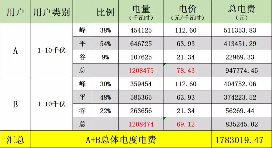 (圖7:調(diào)整前A、B兩企業(yè)的總體電費(fèi))