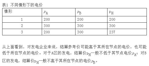 第二條,發(fā)電機(jī)組的結(jié)算價(jià)等于合約結(jié)算價(jià)。發(fā)電機(jī)組的結(jié)算價(jià)是其所在節(jié)點(diǎn)的日前市場價(jià)格,而合約結(jié)算價(jià)是日前市場的統(tǒng)一參考點(diǎn)Hub的日前市場價(jià)格。這兩個(gè)價(jià)格在系統(tǒng)沒有發(fā)生阻塞的時(shí)候是相同的,但如果發(fā)生阻塞,兩者就會(huì)出現(xiàn)不一致的情況。