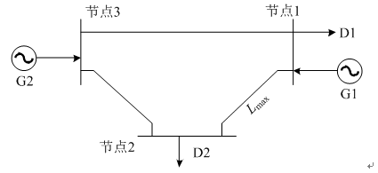 為了驗(yàn)證雙層粒子群算法的有效性,本節(jié)運(yùn)用雙層粒子群算法求解文獻(xiàn)[9-10]的3節(jié)點(diǎn)測試系統(tǒng),并將求解結(jié)果進(jìn)行比對(duì)。3節(jié)點(diǎn)系統(tǒng)網(wǎng)絡(luò)拓?fù)浜突緟?shù)如圖4和表1所示,各節(jié)點(diǎn)間由相同導(dǎo)納的線路相連,線路1-2的輸電上限為Lmax。
