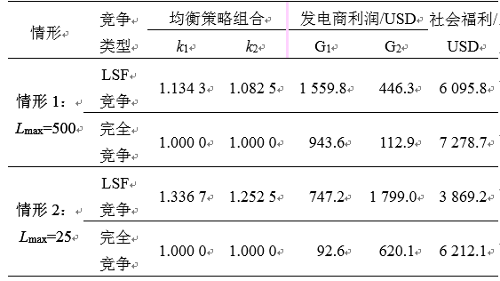 2)發(fā)電商在寡頭競爭下的利潤不一定都比完全競爭下的高,發(fā)電商所處地理位置和自身機(jī)組的容量限制,可能導(dǎo)致發(fā)電商在寡頭競爭下的收益低于完全競爭下的。
