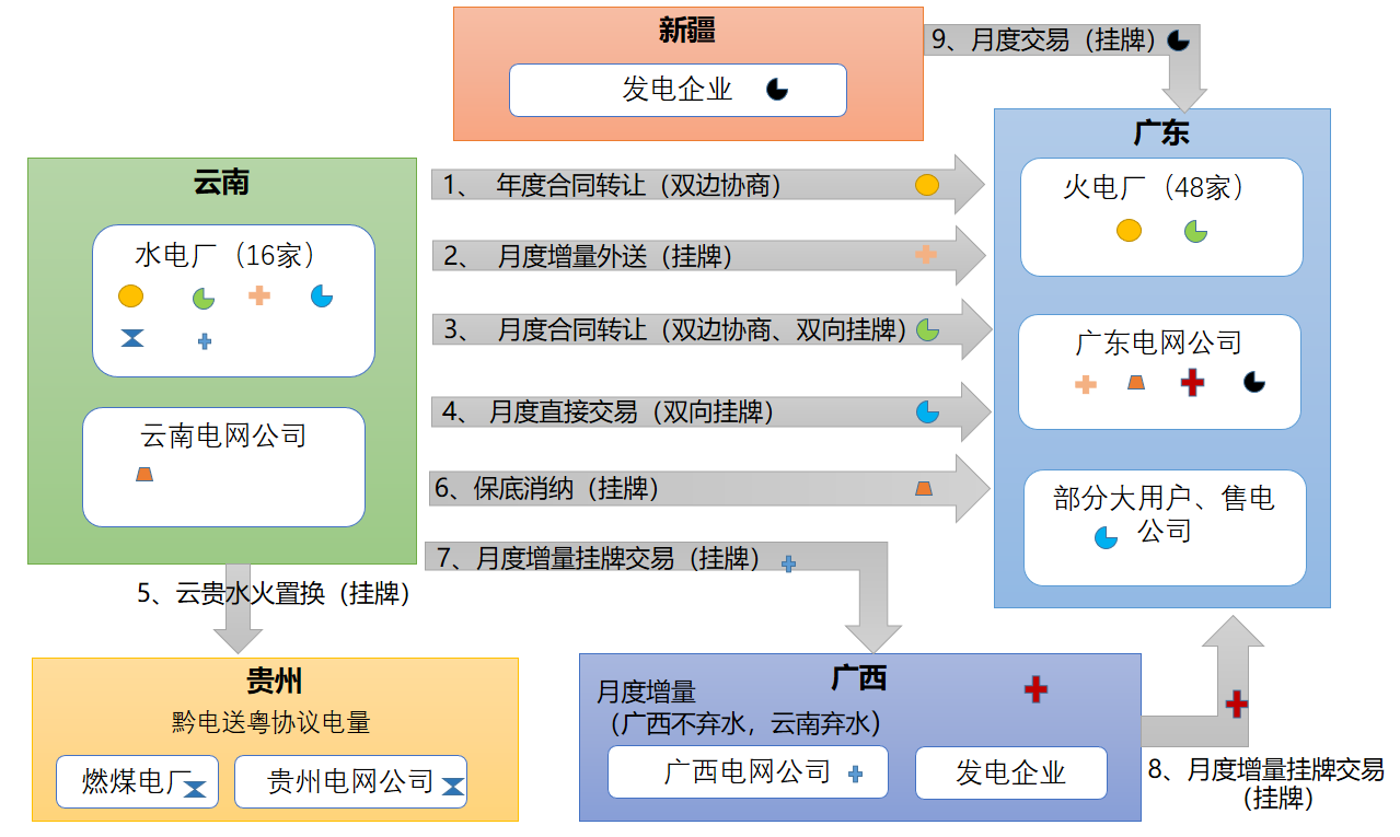 2、云南是最大的電力交易供應(yīng)方(在9項(xiàng)交易工作中云南有7項(xiàng)作為電力供應(yīng)方,涉及云南水電廠共計(jì)16家)。方案充分利用通道保障,進(jìn)一步豐富了涉及云南的交易品種及形式,云南水電廠的富余水電將得到最大化消納,實(shí)現(xiàn)全力減少云南棄水的工作目標(biāo)。