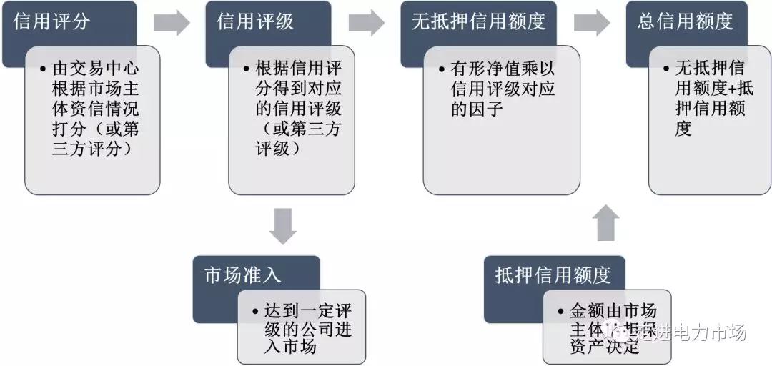 從上述方案看,其中提及的信用體系的建設(shè)也是停留在信用評估的部分,即僅考察市場主體的償債能力。其中通過市場主體的市場行為進(jìn)行信用評價(jià)是較為符合電力市場特點(diǎn)的,但是對于考察市場主體在后續(xù)市場交易中的風(fēng)險(xiǎn),并以此為基礎(chǔ)反過來監(jiān)督市場主體的市場交易行為(如對其交易規(guī)模進(jìn)行限制),則沒有在方案中提到。而這也是電力市場信用體系的一個(gè)重要內(nèi)容。