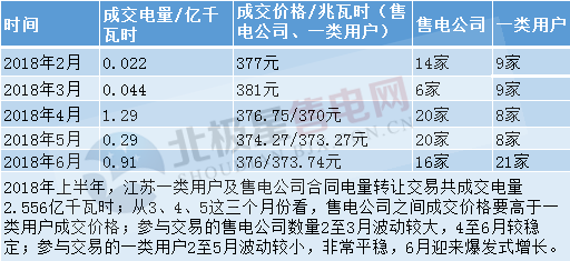 圖4江蘇2018年1-6月一類用戶及售電公司合同電量轉(zhuǎn)讓交易情況