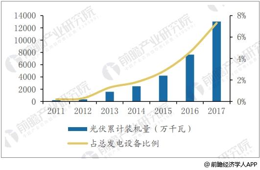 2011年-2017年光伏累計(jì)裝機(jī)和占比