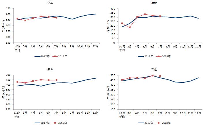 7月份,四大高載能行業(yè)用電量合計(jì)1620億千瓦時(shí),同比增長(zhǎng)4.2%,占全社會(huì)用電量的比重為25.0%。其中,化工行業(yè)用電量369億千瓦時(shí),同比下降0.8%;建材行業(yè)用電量312億千瓦時(shí),同比增長(zhǎng)2.4%;黑色金屬行業(yè)用電量448億千瓦時(shí),同比增長(zhǎng)7.8%;有色金屬冶煉行業(yè)491億千瓦時(shí),同比增長(zhǎng)6.1%。