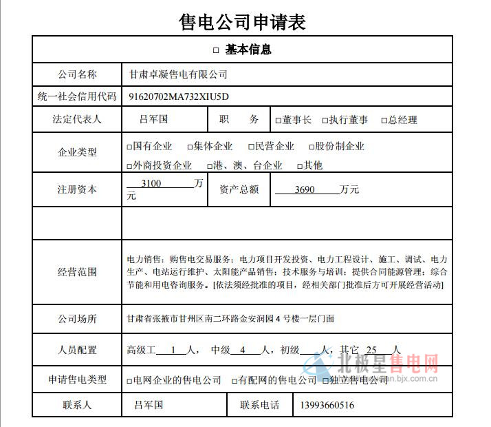 附件:甘肅卓凝售電有限公司售電公司公示信息