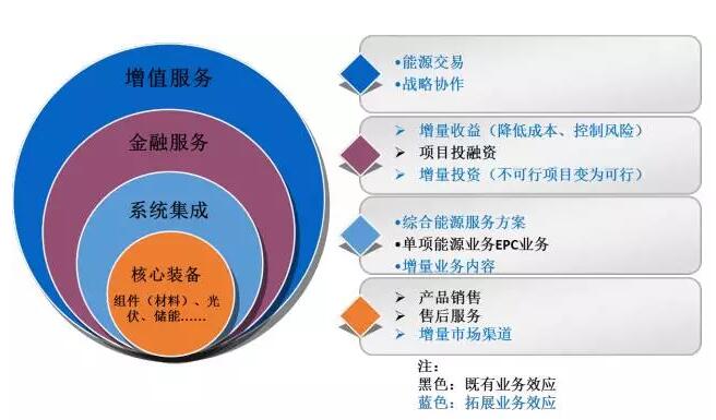 對于以能源領(lǐng)域裝備銷售或工程服務(wù)為既有主營業(yè)務(wù)的企業(yè)(集團(tuán)),在能源互聯(lián)網(wǎng)趨勢下,業(yè)務(wù)模式可以從裝備往集成、金融、增值服務(wù)等領(lǐng)域延伸,如圖7所示。